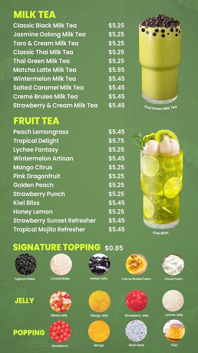 - Fruit Teas: Explore refreshing options like Peach Lemongrass and Lychee Fantasy, perfect on a warm day.